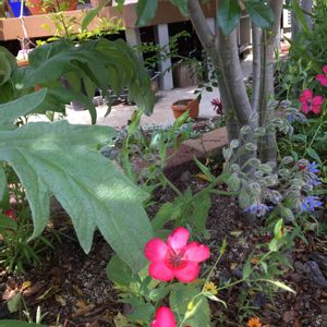 ミムラスの花色は 他にもピンクや黄色や 白色等々🌺 カラフルで元気貰える 色味が好きです💞 📷は1ヶ月程後の5.26……その後のお花です こんもり元気に育って いました💚 併せて別に植えていた ハーブ達🌿 ボリジが スクスクと可愛く咲いてました😍 やっぱりハーブは たくましいですね🍀