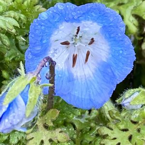 今日の庭の様子 ①ネモフィラ 種から咲き始めた。 ②パンジー,ビオラ ③バーベナ ④クリスマスローズ ⑤シレネピンクパンサー