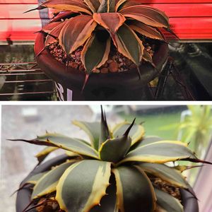 アガベ・メリコ錦。 斑入りが美しいやつ。うちのアガベの中ではかなりデカい🦖 アガベ欲が滾っております🤤
