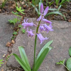 ピンクのシラーが咲いていました。レンガの隙間に‼️ ど根性シラーになってしまいました。あーあ。移植できないなぁ。 がっかり、ピンクは貴重なのに✨