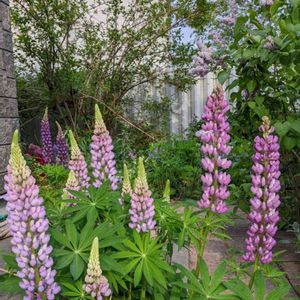 砂利のところからこぼれ種で発芽したルピナスさんがこんなに大きくなって、咲いてきました。ピンクまで咲き始めました。2株以上はあるようです。今うちの庭にはルピナスが大占拠していて、ルピナスだらけです。 うれしー悲鳴です。😅😅😅