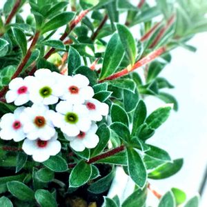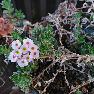アリッサムより少し大きい 白い小花ですが中心が黄色や赤 去年、地植えしましたが広がって増えてきました。