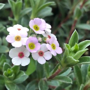 アンドロサセ ラヌギノーサ GSで知りましたが、わたしが調べる限り入手経路が限られていたコチラ。 去年2株手に入れ冬越ししました。 ベースの色が違うのは時間の経過かな?と最初思っていました。 時間の経過もあるけれど、我が家のものは、白が強い株とピンクが強い株で分かれているようです。 赤、緑、黄など中心の色がカワイイ💕