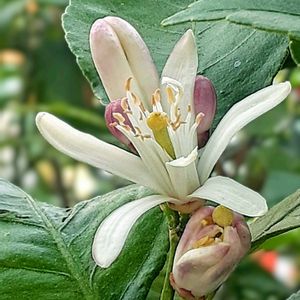 今日のお花 🍀レモン ミカン科 ミカン属 赤紫色のつぼみが開くと 白色の花を咲かせ 甘い香りでいっぱいになる檸檬