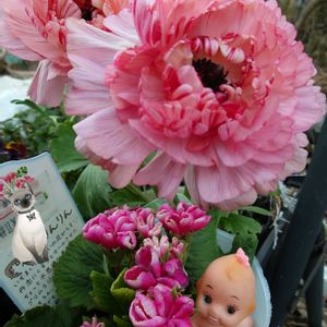 🏷️19日はピンクの日 🏷️いちおしキュピの日 誰が一番かわちぃ? みんなちがって、みんないい😻 お気に入りのラナンキュラスイカロスと プリムラ星咲きふくりんりん💓 寒波到来と体調不良でまだ 黒ポットのままでゴメンニャサイ🙏 今日は突風がすごい🍃