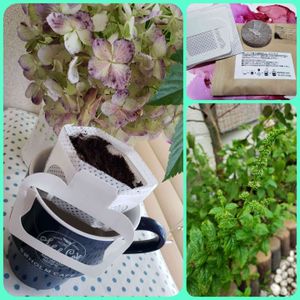 おはようございます😺 忘れていました💦 「花のあるおうち時間キャンペーン」でいただいたドリッパーで育てる栽培キット😆✨ 昨日、種まきしました❣️🤗💕 ペパーミントが出来るかな😆✨