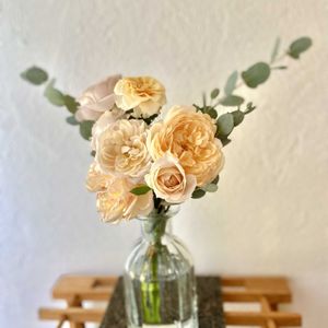 こんばんは⭐︎ 朝晩は少し涼しくなりましたが 日中はまだまだ暑く… せっかく庭に咲いたバラが日焼けしてしまってるのでカット✂️して花器に飾りました🌹