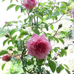 サンセットグロウの反対にいるのがこの子🌹 昨秋植えたばかりでまだヒョロヒョロで、ここは日当たりも良くないんだけど、君ならそれぐらいで丁度いいよね。 ポールノエル