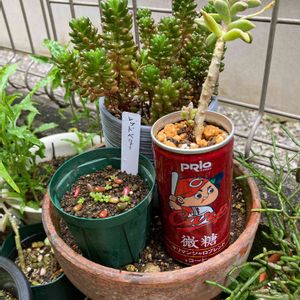 こんばんは☺️ 帰宅途中のGSポチポチです。 今日はムッチリぷくぷくの日。 忘れませんでした。2回目の参加です。 レッドベリーさんお迎えした時よりちょっと大きく、ツヤツヤしてます。😍 植え替える時に落ちたつぶつぶも芽が出てきてます。🤩 カープ坊やの缶使ってますけど、ポンさんは燕ファンです。 200pic投稿まであと少し。何アップしよう。🤔