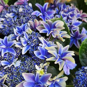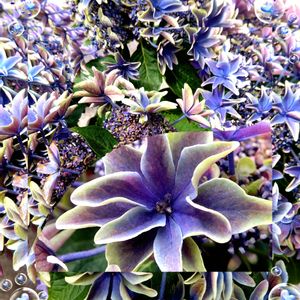 *紫陽花* 花屋さんに行ったら、母の日ようの紫陽花が いっぱいです。 選り取り見取り、4鉢お買い上げ。✴️ *月虹*💙💙💙