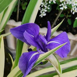 🍀爽やかです🍀 班入りカキツバタ もっと葉っぱを入れてスマートに撮りたかったとですが、他所様のお庭ということもあり、これが限界でした( ˙▿˙ )☝ 1日遅れましたが、 🏷8日は葉っぱの発表会に参加させてください🙇♀️ よろしくお願いします。 斑入りカキツバタ(カキツバタの園芸品種)は、カキツバタの品種の一つで、葉に斑が入るのが特徴です。カキツバタ自体は、本来青色の花を咲かせ、水辺を彩る植物として知られています。斑入りカキツバタは、その華やかな葉姿で、観賞価値を高めているため、庭や水辺の景観に彩りを添えるのに適しています。
