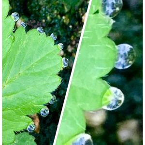 画像1.2/いちご いちごの葉水(溢液現象)がキラキラと綺麗でした ╰(*´︶`*)╯♡ 画像3/ジニア 可愛い🩷 画像4/オステオスペルマムポツポツと咲き始めました〜 画像5/今日の収穫