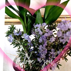 おはようございます☀ 今朝は部屋の中からのpic 庭でお花をいっぱいつけていたローズマリー 近づくと爽やかな香り カットして チェストの上に飾りました p2隣にある短い背丈の黒法師 背高のっぽさんとは違って可愛らしい