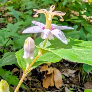 ヤマジノホトトギス(山路の杜鵑草) たった一つひっそりと💕 茎が毛深いです 花期 8月〜10月 2025.9.22