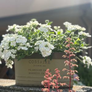 サントリーフラワーズ 花手毬〜絢〜 ゆきのしろ/あかいろ/ むらさきしきぶ 花手毬 〜絢〜を3色育てています🪴🪴🪴 むらさきしきぶのみ一気に切り戻し ゆきのしろと あかいろはお花が終わった所のみカットしてます✂️✂️✂️ 切り戻してボッと咲かすのもよし 休む事なくお花が咲くので 終わったお花だけカットして ずっとお花を楽しむもよし カットの方法?を変えて花手毬〜絢〜 楽しんでます😊