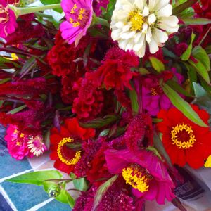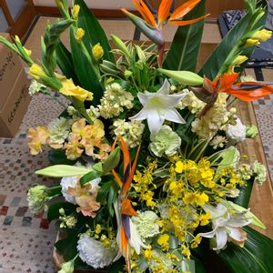 叔父の葬儀で頂いた花 珍しい菊やダリア 八重のトルコキキョウなど 子どもの頃から面倒みて遊んでくれた優しい叔父でした。