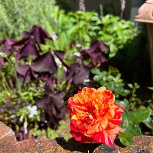 こんにちはー。風は強いですが晴れています🌞 お庭のホーカスポーカスというバラが時々咲いてくれます🌹 2枚目は100均の自転車に飢えたセダム。可愛いです😍