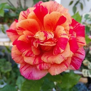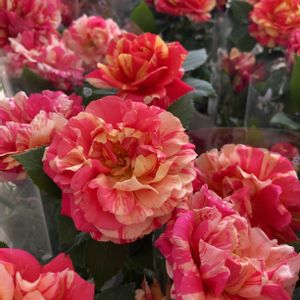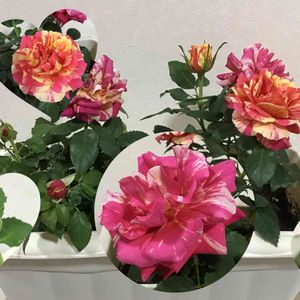 あ、今日は水曜日ローズショーの日だった〜‼️ ミニバラ、ホーカスポーカスコルダナ みんなより遅れて咲いてきました❤️ ド派手な色合いが目を引きます🌹
