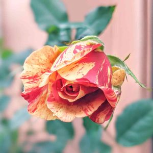 ミニバラ ホーカスポーカスコルナーダ ミニバラとは言え なかなかの大輪👀✨ 6〜7センチあります お花が2つと蕾がついてます🥰 絞り模様が美しい💖