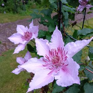 今日のお花 クレマチス💮ジョセフィーヌ(クレマチス・テキセンシス) 薄紫の華やかな美人さん 淡い色合いだから、優しげでもあるわ💓 (過去pic静岡クレマチスの丘で📸)