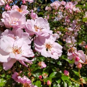 〈🌹姫バラ・安曇野〉 (花散歩・クレマチスの丘) 花言葉(一重のバラ):静かな愛と敬意・清純な愛 濃いピンクと白のコントラストがとても綺麗です💖