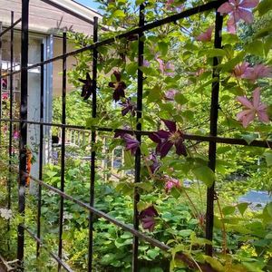 ひとえ咲きのクレマチスだったのに.... いきなり八重ぽい😅 八重咲きのクレマチス欲しかったから願いが通じた?! 下の花びらはベローンと長いしw