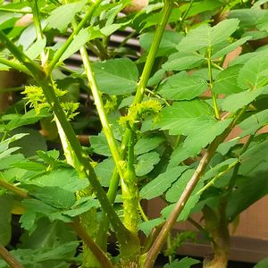 タラの芽 同じお宅の一角に植えられてます 春に切り戻ししたらしく、今新芽が出ていますね🌿
