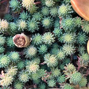 かなり荒れ果てたマルバマンネングサの森に佇むオーロラちゃん😍 マンネングサって冬はガッサガッサになっても、春にはまた復活するから素敵です🌈