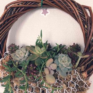 クリスマスリースを解体して、以前からやってみたかった多肉リースを作りました🥰 水苔とネットを買って早、数ヶ月、、年内に取り掛かることができました😅