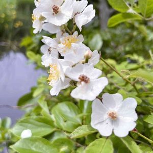 🏷️白い水曜日♡ 🏷️水辺の水曜日 🏷️水曜ローズショウ ✨ノイバラ(野茨)✨ 別名:ノバラ(野薔薇) 池の畔に自生していた 素朴で可愛いらしい白いバラ🌹 夏には赤い実🔴ローズヒップになるんですね🎵 花言葉💐 『素朴な愛』『上品な美しさ』等… 赤い実は『無意識の美』✨