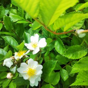 雑木林の縁に 野ばらが 何ヵ所にも 顔を出して 咲いていました🤗 の 🌼 ば 🌼 ら なぜか 懐かしい響き