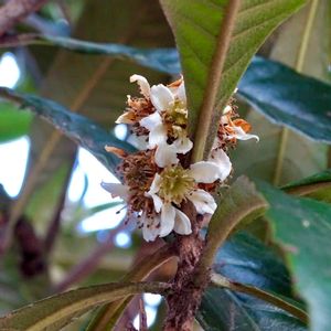 14日のモグラウチの時に 地元の神社で撮影したビワの花 まだ、どんどや、もぐらうちなど 昔の風習が生きています。