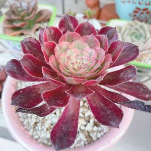 45さんシリーズPart3‼︎ アエオのマリド錦です😍真冬には素晴らしい発色をしてくれるので、大好きなのですが、夏越し失敗😵ポチったのも変なのが届いて⤵︎(お値段はそこそこ💦)ショックを受けながらも育てていましたが、ご縁がありお迎えです🙌🏼 隣はポチった愛染錦。こちらは成功💫なんたって安いし🤭同居の小人の花束も嬉しそう♡後ろの鳳凰錦も嬉しそう♡ アエオの季節ですね゚ヽ(*´∀`)ノ♬♪♫ ♬♪♫♡