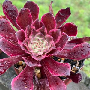 今日も雨です☔️ 乾いてカリカリの鉢をデッキの 雨のあたる場所に出して ガラス越しに眺めてます♡ 手前にあるマリド錦で 錦の日参加です🙌