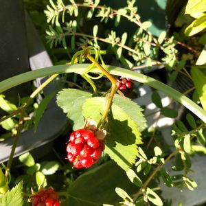 木苺が赤い実をつけていてびっくり❣️