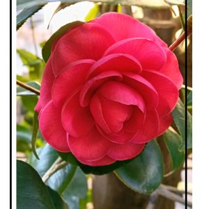 鮮やかな赤い椿✨ 淡いピンク色の椿の木から…不思議です🤔