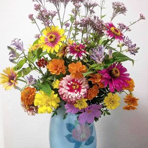 1️⃣ 庭のお花を切り バサッと盛り花にしてみました✿^‿^✿ フジバカマ ホトトギス ヒャクニチソウ マリーゴールド コスモス 少し 2️⃣ 秋の景色 家裏の野原のエノコログ サです。