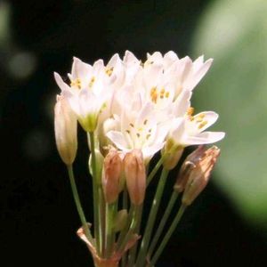 畠韮 ハタケニラ ヒガンバナ科 ハタケニラ属 原産地 北アメリカ 南アメリカ 帰化種 花期 5〜6月 明治時代に鑑賞用に導入されたも のが逸出している。 ・地下に直径約1.5cm の球茎があり、その周囲に小さな鱗茎を多数つける。 ・葉は幅のある扁平な線形で、柔らかい。 ・散形花序に5 ~10個の花をつける。 ・花 直径約1.5cmの白色。 花被片は6 個で半開す る。 外側に淡褐紫色の筋紋が あり基部が黄緑 色を帯 びる。 雄しべ6個。 花糸はひれ(翼)があっ て幅が 広く、基部で合 着する。 ・蒴果 長さ約7mm。 種子は黒色、 長さ約 2mm。 夕方散歩している時に出会った。 ニラの名が付くがニラの匂いは全くせず、それどころかとても良い香りがあたり一面漂っていた。 球茎の周りに付く鱗茎が抜いても残って繁殖するらしく農地での影響は深刻で農家からは嫌われているらしい。 マツバウンランが寄り添っています。