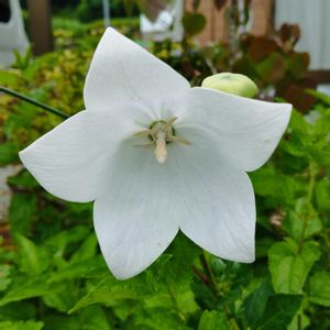 キキョウ キキョウが咲いてました 草の中から急に現れた! 暑いか、雨降るかで草取り中々出来なかったからな… ところで我が家のは白だったっけ?紫はどこいった?