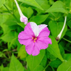 オシロイバナ 寒くなり、段々数が少なくなりました 花色も薄い物が多くなり、ある意味三色に見えたりして〜