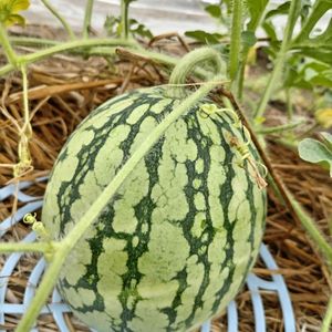 出来てました〜💕🍉 食べれるまでには もう少し待ってね🤗💕 あおいさんの主催の 🏷2021年同期の会💝No.8 🏷太陽がくれた季節a☀ このスイカ🍉は 皮が真っ黒くなるまでは まだまだ中が甘くは なって無いのです🤗 あとどのくらいかな🐰💗