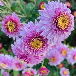 こちら実家庭のキクの花✨✨ 風に負けず元気です♪ 今ピンク系の花が多く咲いています〜🙆