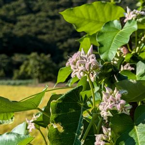 ガガイモ 刈り取りをまつ稲田の防獣柵に絡みついている 毎日ピンクの日🏷 花粉運搬者なのか、クロアゲハの仲間が羽を広げていた(2枚目) 中央に溝が走っている花冠内側には長毛がモフモフ(ノ)・ω・(ヾ) 5個の雄しべは短筒状に合着してずい柱を作っているのだけれど、その中心から雌しべの柱頭が突き出していて、先はよれて曲がっている(3枚目) 対生に付く厚みのある葉が光に透けている Z巻きのつる巻き月曜日🏷(4枚目) これだけ咲いていても結実率は良い方ではなくて、おそらくこの塊の中でも小さい花は実を結ばないのではないか、と思うのですよね꒰Ꮚ´ꈊ`Ꮚ꒱(5枚目)