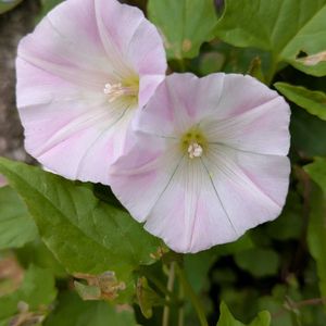 コヒルガオ 花だけ見るとヒルガオとそっくりで、時々ヒルガオとして投稿されていることもあるようだ(,,>᎑<,,) 萼を先の尖った2枚の苞葉が包み込むのは同じだけれど、花柄には翼と呼ばれる縮れたヒダヒダがある♬ 葉の形はバリエーションがあって、典型的なタイプだと葉の基部が横に張り出している🟩 雄しべは5個、雌しべは1個くっきりと見えている🩷でも結実したところは見たことがない 毎日ピンクの日🏷