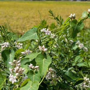 ナタマメ (刀豆、帯刀) ヒマワリ迷路のあと、車を走らせていると「丹波なた豆茶」の幟を発見👀 ちょっと畑を拝見させて頂く! 花の色はピンクもあるようだけれど、こちらのは真っ白のシロナタマメ♡ 蝶型花が逆さまになっていて、少し捻れたような竜骨弁と翼弁が内側に曲がって、下にある大きな旗弁に被さっているように見える♬ 竜骨弁の中にチラリと雄しべが見えて、周りには若い実が育ち始めている🟡🟢 有機肥料で育てたナタマメの完熟した豆と鞘の一部を使って、お茶として販売されているのだそうな! 福神漬の材料としか認識してなかったよ🙏 Z巻きのつる巻き月曜日🏷