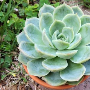 久しぶりの投稿です😁 真夏と真冬は全く多肉のお世話をしないmomoyuです💦 今年の夏はホントに外に出るのが嫌すぎて引きこもってました😣 出るのはしょうがなく最小限の買い物とワンコの散歩のみ💨 そして我が家の多肉たちも過酷な夏を過ごしてもらっちゃいました〜 遮光なし&水やりなし😅 過酷すぎだよね💦 置き場所は様々で雨ざらし組もあれば軒下組も♫ 東側の子もいれば、南側の子もいます💞 結果は… たくさんの子をダメにしました💦 まぁ〜分かってたよ! ある程度はしょうがないと思ってるしね〜😅 南側の軒下組が1番被害が多かったです。 そして東側の雨ざらし組が1番生き残ってました〜❤️ 時折あったゲリラ豪雨に助けられたみたい😁 それで腐る子はあまりいなかったかな。 来年は大事な子は東側の雨ざらし棚に置くことにします💞 picは東側雨ざらし棚のローズローサ🍀 むちむちでとっても良い感じに❤️❤️❤️