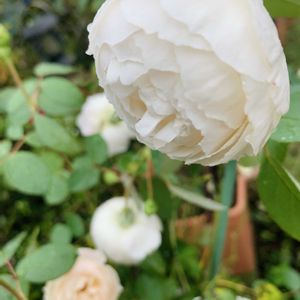 こんばんは♪ 薔薇の植え替えがやっと終わりました😆 今日は心配していた癌腫もなく終了😮💨 あとはお天気を見ながら地植えの薔薇の寒肥を与えるだけとなり少し気が楽になりました☺️ 先日蕾だったデスデモーナ🤍 我が家で唯一咲いている薔薇です🌹