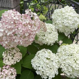 "アナベル" 白🤍とピンク🩷 品種名不明 今年は鉢の土を1/3ほど新しくして、茎も短めにカットしたら、大きく綺麗に咲きました🥰