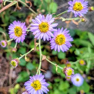 今日のお花 ノコンギク ①②陽当たりの良い場所 ③ウメバチソウとノコンギク ④ススキの陰で。 ⑤これは園芸種のダルマノコンギク 3年前、山野草展でポット苗をいただいた。 ⬆️翌年丸く良い感じに。 ⬇️3年後、大きな鉢でぎゅうぎゅうに。 花が終わったらどうしたものか考え中。 地植えにしたら丸くはならないかな? 小分けにしたらどんどん殖えそうです😆 100均でプラスチックのボールを2つ買って丸い鉢に。たくさん穴を開けて挿し芽はどうか? 水やり困難、🌱の延びるスペースがないのですぐに枯れそう、この案却下😆 ポットに株分け、玄関先に置いて気づいた方に育てて貰う作戦に👌