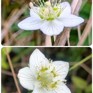 ウメバチソウ 5個の雄しべは1日に1本ずつ伸びて、葯が落ちていく♡なので例えば1枚目はどちらの花も、雄しべが中央に集まっていて開花間もないことがわかる♬ ところが2枚目の下の花は、5個全て伸びて、中央に膨らんだ雌しべがみえて、葯が落ちているものもあるので7日は経っているという訳だ(^_-) 糸状に分かれたつぶつぶは仮雄しべ🟡基部の蜜を舐めにアリが訪れている🐜 明るい湿原は、ウメバチソウでそろそろ店仕舞いとなる 2025秋の十草🏷